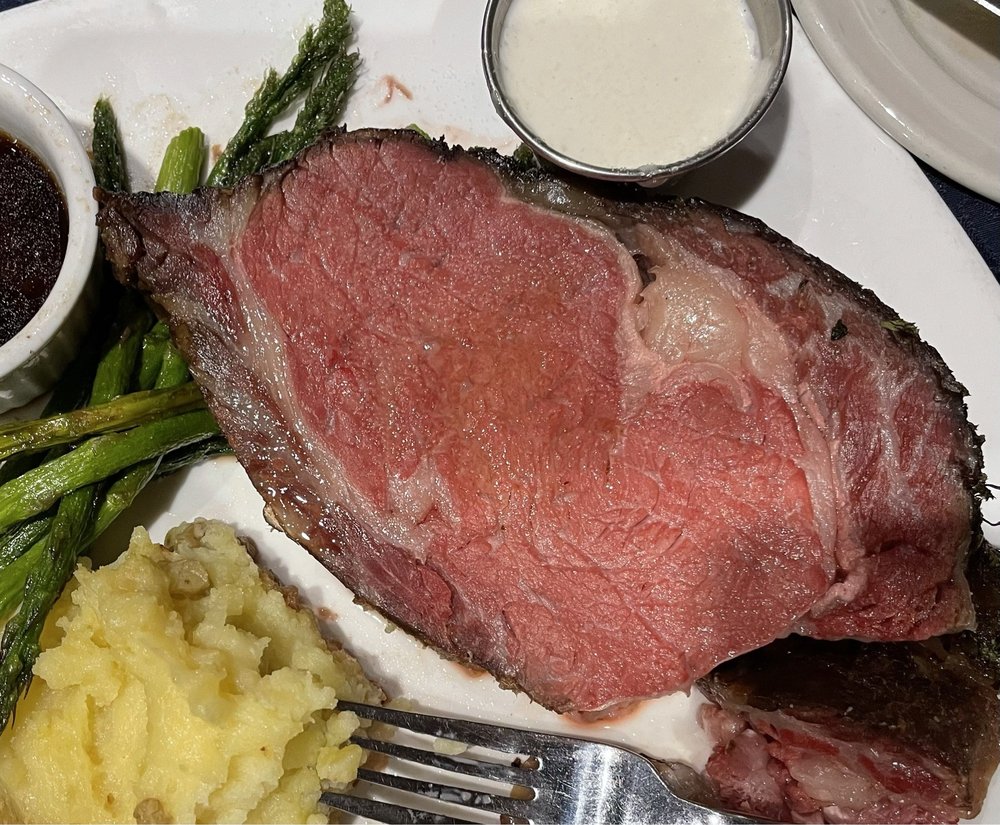Herb crusted prime rib, eggs, roasted potato, choice of toast.